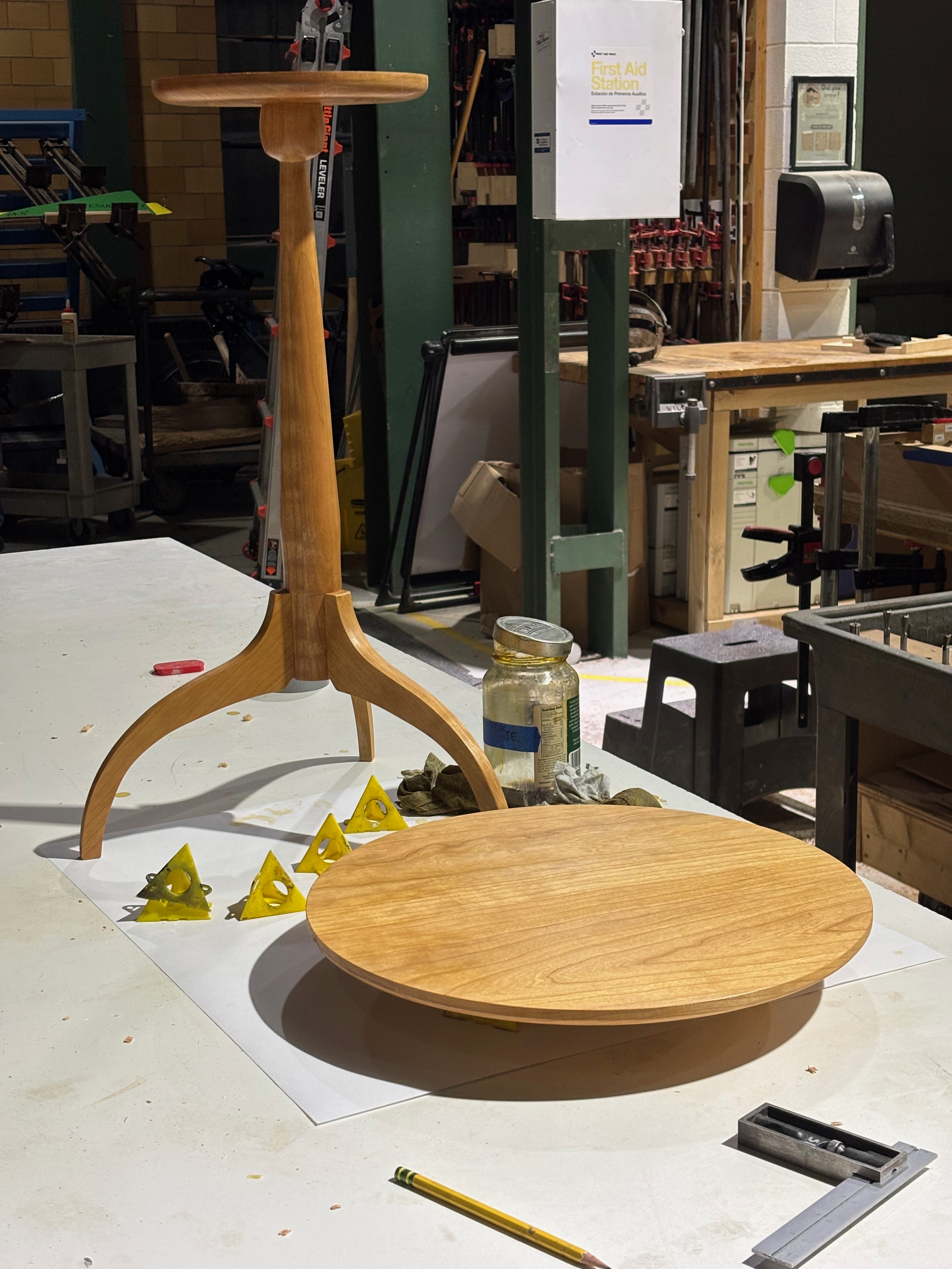 By using cherry and slender pieces, it is light enough to easily move around. I seem to be using it all the time now that it's in the house.
